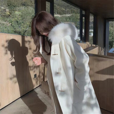 Áo khoác len cashmere hai mặt lỏng lẻo hai mặt khí chất cao cấp Hàn Quốc Áo khoác len có mũ dài đến đầu gối cho nữ