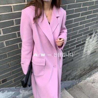 Áo khoác len hai mặt thu đông phong cách Hàn Quốc màu trơn đơn giản khí chất đi làm không thắt lưng áo khoác len màu kẹo