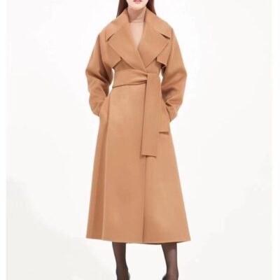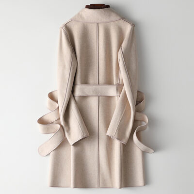 2 Mặt Áo Khoác Cashmere Sang Trọng Dày Ấm Dây Đôi Dáng Rộng Dài Len Áo Khoác Len