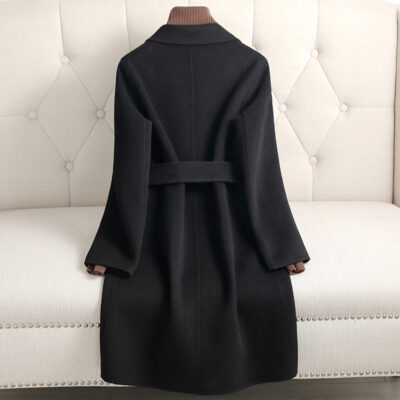 Áo khoác len màu đen Dài đến đầu gối Áo khoác len hai mặt dài đến đầu gối Phong cách Hepburn Áo khoác nữ