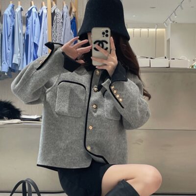 2023 Chống Mùa Áo Khoác Len Cashmere 2 Mặt Khóa Ngắn Của Pháp Vàng Nhỏ Nhỏ Áo Khoác Nhỏ Thơm Phong Cách