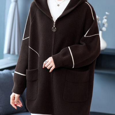 Q462 Mới Phong Cách Hàn Quốc Rộng Và Mỏng Có Mũ Cashmere Áo Khoác Nữ Kiểu Dáng Lớn Ve Áo Len Áo Khoác Len