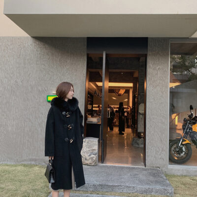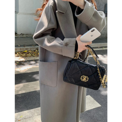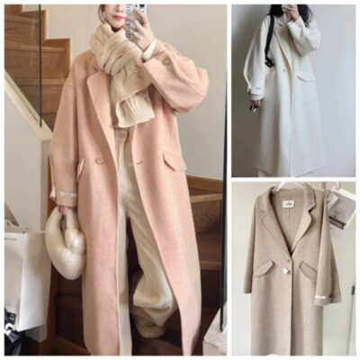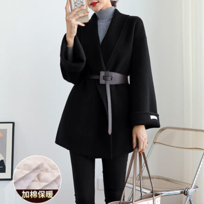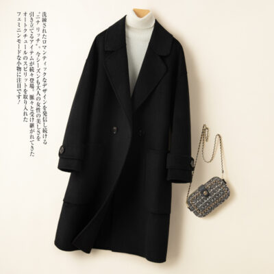 Nguồn xưởng áo khoác cashmere 2 mặt nữ dáng trung màu đen phiên bản hàn quốc bán buôn áo khoác len cao cấp