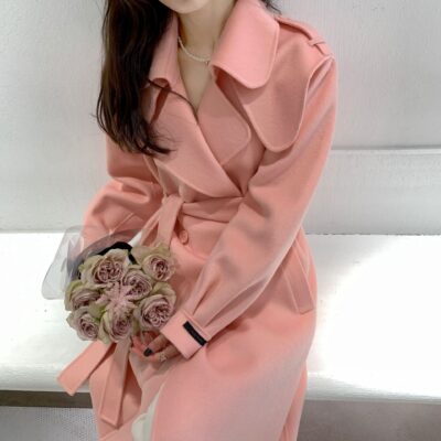 Áo khoác gió màu hồng 23 tuổi sản phẩm mới áo khoác hai mặt tính khí chiều dài trung bình phù hợp với cổ áo mùa thu áo khoác ngoài trạm phân phối độc lập
