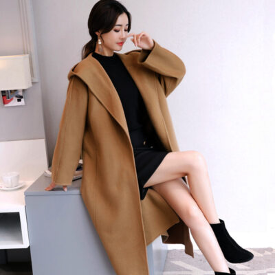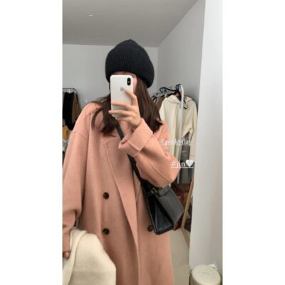 Áo khoác len nữ hai mặt phong cách Hàn Quốc mùa đông mới phong cách Hepburn Áo khoác len cashmere dài vừa phải
