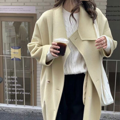 Áo khoác len trơn hai mặt dài trung bình cao cấp phong cách Hàn Quốc Áo khoác len dày hai mặt dáng rộng