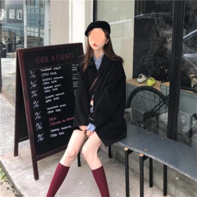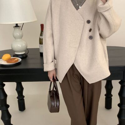 Dongdaemun bất đối xứng rời khí chất áo khoác len 2 mặt nữ mùa thu đông 2023 mới áo khoác len 2 mặt nữ