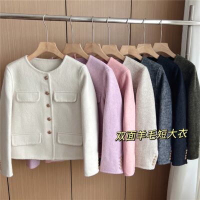 Mùa xuân và mùa thu 2023 mới cao cấp phù hợp với áo khoác len hai mặt ngắn của phụ nữ khí chất nhỏ áo khoác len mỏng