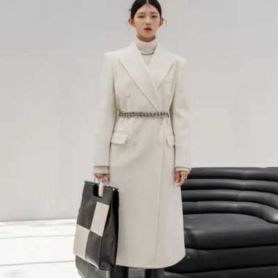 Điểm Chất Lượng 2023 Mùa Thu Đông Âu Mỹ Đôi Kim Loại Khóa Sư Tử Mỏng Dài Áo Khoác Len Áo Khoác