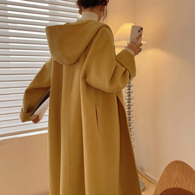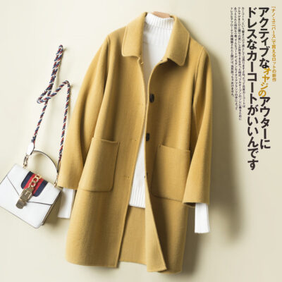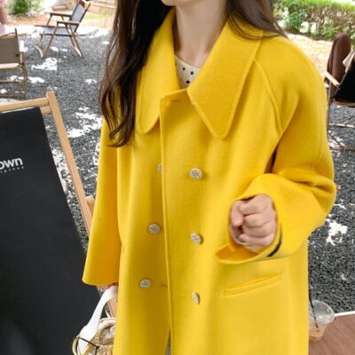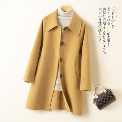 Mùa Xuân Năm 2023 Thời Trang Mới Tính Khí Ngỗng Vàng Cổ Cao Đôi Dài 2 Mặt Áo Khoác Len Áo Khoác Nữ