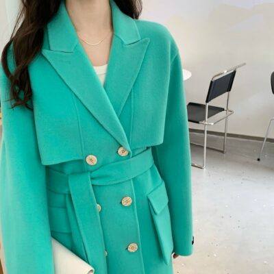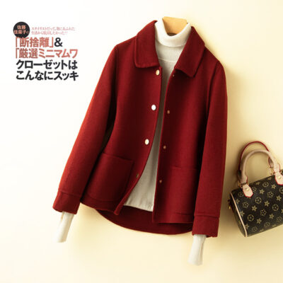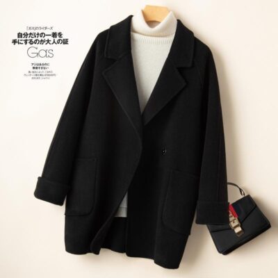 Áo khoác cashmere hai mặt nữ ngắn ngắn cao cấp phong cách Hepburn len cao cấp phù hợp với áo khoác len