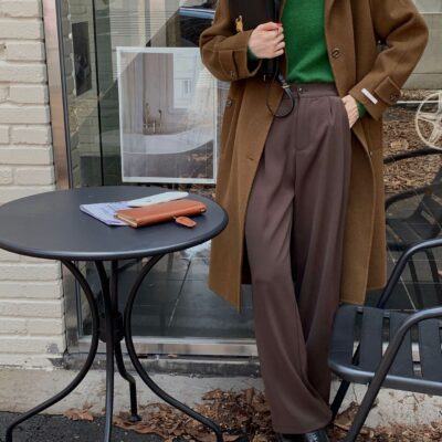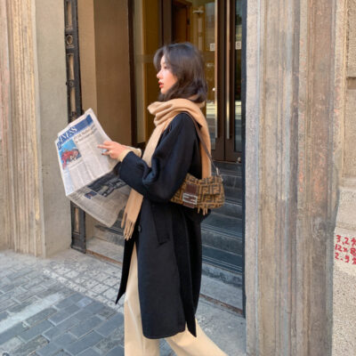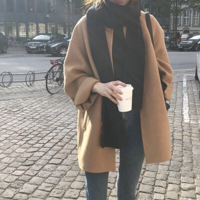 Áo khoác len cashmere dáng rộng của Anna Sex and the City thu đông hai mặt dài vừa phải