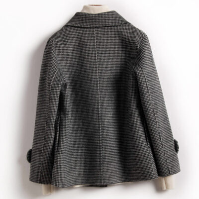 Áo khoác cashmere 2 mặt chống mùa nữ houndstooth dáng rộng thường ngày mùa thu đông cao cấp phù hợp với cổ áo len kẻ sọc