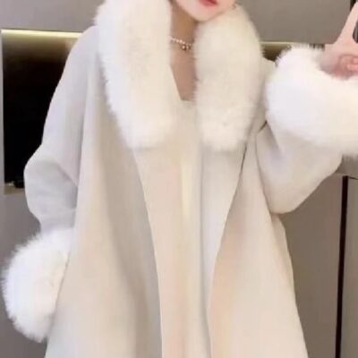LP 2 Mặt Áo Khoác Cashmere Nữ Áo Khoác Len Tay Chồn Cổ Áo Choàng Len Cashmere Phối Áo Khoác Len Nữ