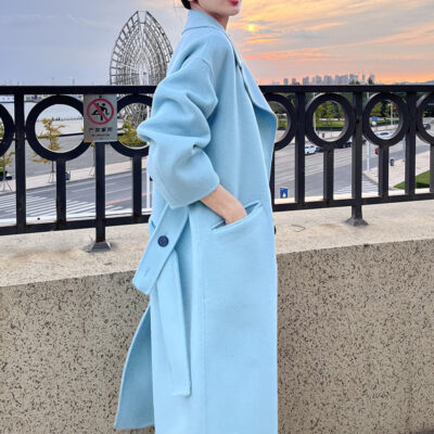 Mùa thu và mùa đông mới áo khoác len hai mặt khí chất nữ tính phóng khoáng dài qua đầu gối phù hợp với cổ áo buộc áo khoác len