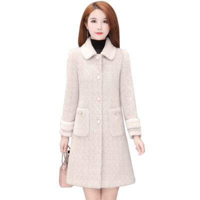 Áo len nhung chồn mùa đông mới cashmere dày vàng nhung chồn áo khoác nữ giữa chiều dài mẹ áo khoác len