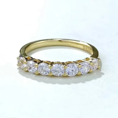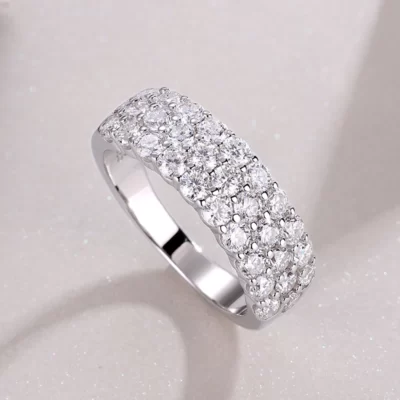 Serenity 1.8cttw D Màu 2.5mm 3 Hàng Full Moissanite Nhẫn Cưới Nữ S925 Bạc Mạ Vàng Trắng 18K Trang Sức Viễn Chí Bảo