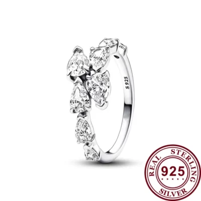 2023 Mới Bạc 925 Trái Tim Tình Yêu Bông Tuyết Full Kim Cương Đeo Chéo Nữ Logo Ban Đầu Nhẫn Tiệc Cưới Món Quà Tinh Tế