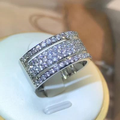 Chất Liệu Bạc 925 Vĩnh Cửu Ba Hàng Nhẫn Kim Cương CZ Cưới, Nhẫn Dành Cho Nữ Ngón Tay Trang Sức Dự Tiệc Bán Buôn