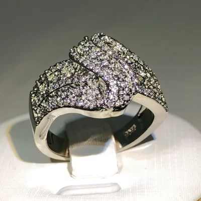 Chất Liệu Bạc 925 CZ ME Pavé Đen Nhẫn Đôi Nhẫn Đứng Kim Cương Dành Cho Nữ Trang Sức Dự Tiệc Quà Tặng Hoa Hồng Nhẫn
