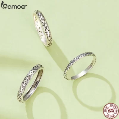 Bamoer Mạ Vintage Nữ Bạc 925 Dập Nổi Họa Tiết Vintage Nhẫn Nữ Đơn Giản Nhẫn Bạc Mỹ Trang Sức Cao Cấp Thương Hiệu Quà Tặng