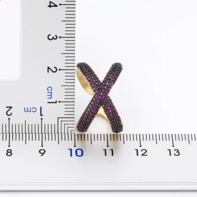 Charm Đơn Giản Hình Chữ X Chữ Thập Đồng Nhẫn Đính Đá Zircon Cao Cấp Đá CZ 5 Màu Chất Lượng Cao Tiệc Cưới Ngón Tay Có Thể Điều Chỉnh Mở nhẫn