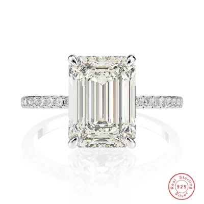 Ngọc Lục Bảo Cắt 4ct Mô Phỏng Đám Cưới Kim Cương Đính Hôn Cocktail Nữ Nhẫn Cao Cấp Bạc 925 Bộ Nhẫn Mỹ Món Quà Trang Sức