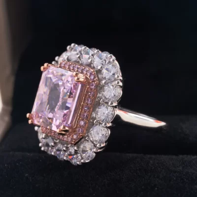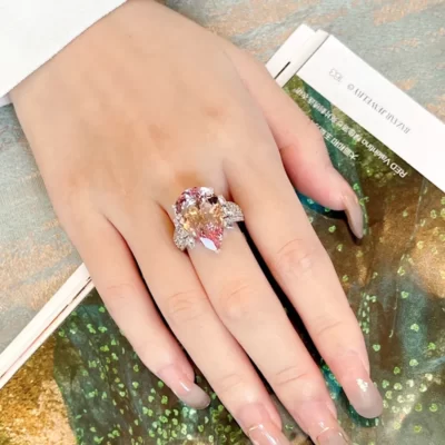Nhẫn bạc S925 sang trọng màu hồng Morgan màu sâm panh trứng bồ câu khảm đá quý màu trang sức cưới dành cho nữ