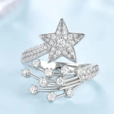 Sao chổi Sang Trọng Đầy Đủ Moissanite Nhẫn Đứng Kim Cương cho Nữ Bạc 925 Mạ Vàng 18k Pentagram Cưới Đính Hôn Mở Nhẫn