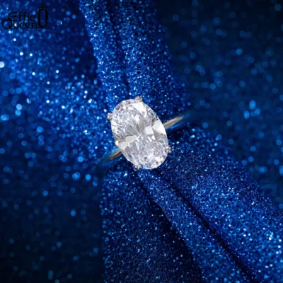 Effie Nữ Hoàng Nữ Bạc 925 Hình Bầu Dục-Cắt Kim Cương Giải Đơn Nhẫn Hào Quang 8A Đính Đá Zircon Cao Cấp Cho Nữ, Nhẫn Nữ Cưới Trang Sức LZR06
