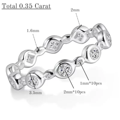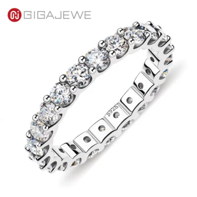 GIGAJEWE Moissanite 2.0-2.4ct 3.0mm D VVS1 Tròn Cắt Bạc 925 Full Enternity Nhẫn Kiểm Tra Kim Cương Đạt Người Phụ Nữ Cô Gái Tặng
