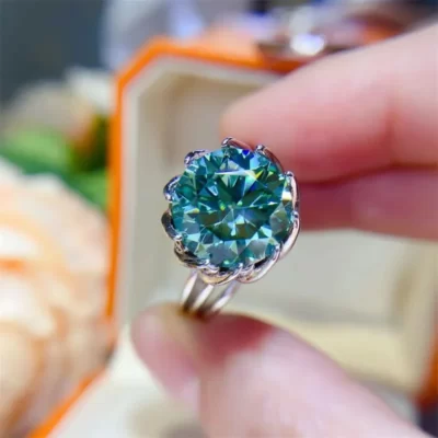 Houtros 3CT 5CT Xanh Moissanite Nhẫn Nữ Bạc 925 Cưới Hoa Sen Kim Cương Đá Quý Nhẫn Kỷ Niệm Trang Sức Viễn Chí Bảo