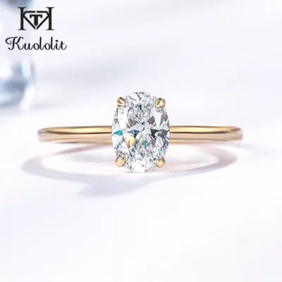 Kuololit 585 Vàng 14K 1.5CT 1.0CT Moissanite Nhẫn Handmade Cho Hình Bầu Dục Nhẫn Đính Hôn Moissanite Có Giấy Chứng Nhận GRA