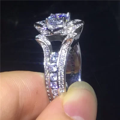 Hoa Vintage Phòng Kim Cương Cz Nhẫn Nữ Bạc 925 Bijou Cưới, Ban Nhạc Cho Nữ, Nhẫn Nữ Cô Dâu Charm Trang Sức Dự Tiệc