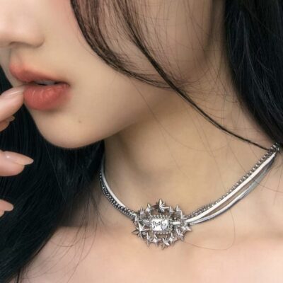 Ánh sáng sang trọng có thể xoay vòng cổ hoa mặt trời nữ ins thích hợp thiết kế xu hướng đơn giản thời trang tính khí dây chuyền xương đòn phụ kiện