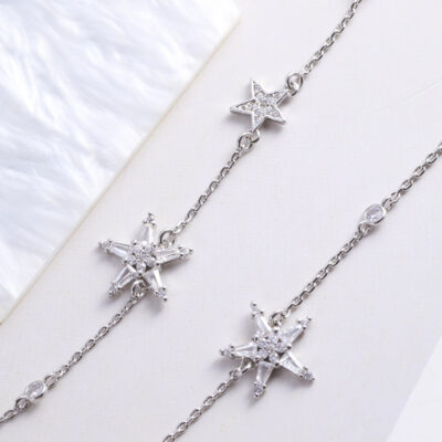 Âu Mỹ Trang Sức Tính Khí Ngọt Ngào Đơn Giản Ngôi Sao Năm Cánh Dát Zircon Đa Mặt Dây Chuyền Nữ Phối Lô Một Mảnh dropshipping