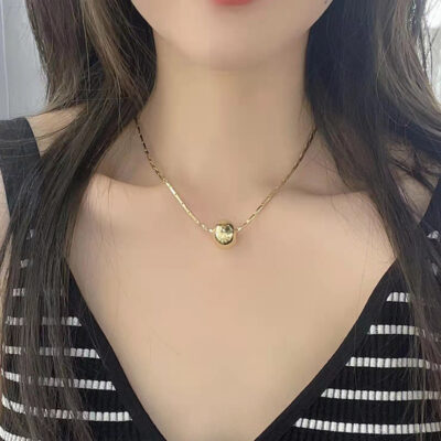 Ánh sáng sang trọng hạt tròn chuỗi xương rắn vòng cổ bằng thép titan thích hợp thiết kế lưới màu đỏ đơn giản nhỏ hạt vàng bóng kim loại dây chuyền xương đòn nữ