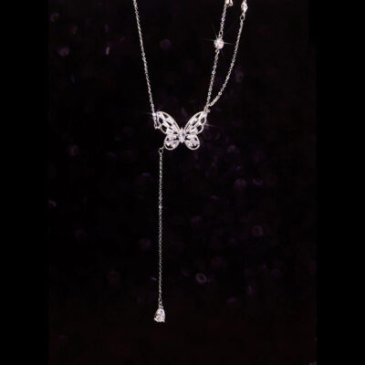 Ánh sáng sang trọng thiết kế ngách 2 lớp zircon tua bướm vòng cổ nữ 2023 mới dây chuyền xương đòn mặt dây chuyền cao cấp