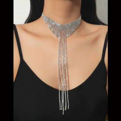 150CM Âu Mỹ Ins Lưới Đỏ Vòng Cổ Choker Đá Kim Cương Bling Đảng Siêu Vòng Cổ