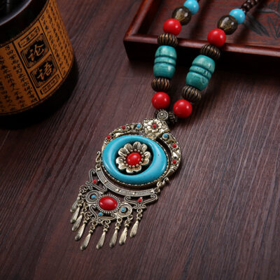 Nhà Máy Store Tây Tạng Trang Sức Bohemian Đĩa Hoa Tua Rua Vòng Cổ Dân Tộc Bãi Biển Áo Len Mới Dây Chuyền