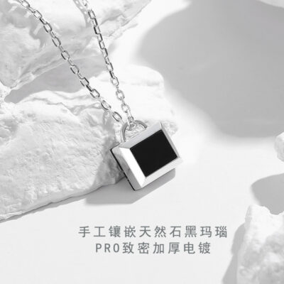 Chất Lượng Cao S925 Bạc Mã Não Đen 2 Mặt Làm Đẹp Vòng Cổ Ins Thích Hợp Đa Năng Không Phai Màu Trang Sức Bán Buôn phụ Nữ