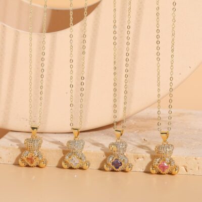 Xuyên biên giới dành riêng cho mặt dây chuyền thời trang gấu zircon gấu love ins phong cách thời trang mạ đồng vòng cổ vàng thật 14K bán buôn