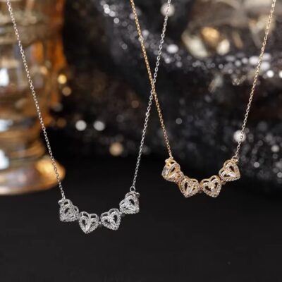 Mới Một Vòng Cổ Trái Tim Hai Lần Đeo Mở Và Đóng Vòng Cổ Cỏ Bốn Lá Thời Trang Nữ Yêu Gấp Chuỗi Xương Đòn Sáng Tạo Bán Buôn