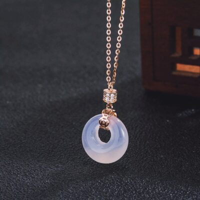 Vòng cổ khóa an toàn bằng bạc s925 dành cho nữ phù hợp với mọi lứa tuổi phong cách Trung Hoa quốc triều chalcedony tự nhiên phong cách Trung Hoa mới Mặt dây chuyền ngọc bích Hetian