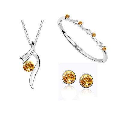 khuyến khích! Trang Sức Hàn Quốc Thời Trang Phù Hợp Với Áo Đơn Giản Bông Tai Pha Lê Vòng Cổ Vòng Tay Trang Sức Bộ 3 1368