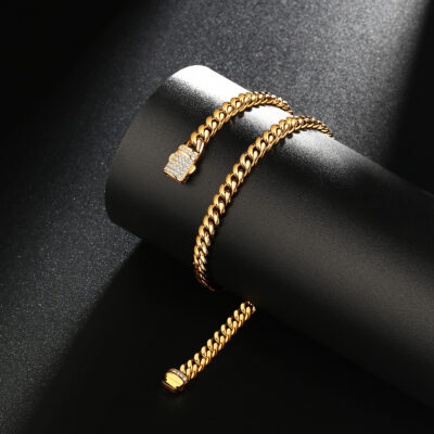 Thương mại điện tử xuyên biên giới thay mặt cho vòng cổ vàng Cuba dành cho nam màu trắng zircon vi khảm khóa khóa dây chuyền mã hóa 6mm-14mm