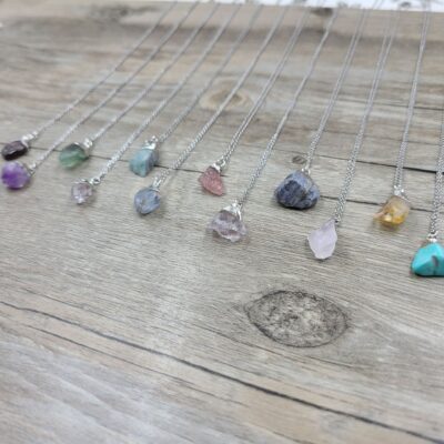 Chuỗi thép không gỉ viền kim loại không đều pha lê tự nhiên mặt dây chuyền vòng cổ đá quý vòng cổ