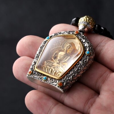 Thangka Phật thẻ Phật giáng sinh mặt dây chuyền bạc dát ngọc lam tự nhiên Nanhong nam vòng cổ Quan Âm Áo len nữ dây chuyền
