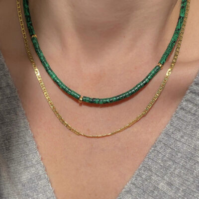 [Vòng cổ hoa đơn trung bình] ngoại thương mạ vàng đồng cỏ ba lá khảm vỏ mã não malachite ngọc lam chuỗi ngắn 45CM