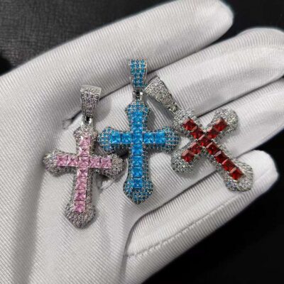 Mặt dây chuyền chữ thập zircon màu vuông phong cách nổ xuyên biên giới